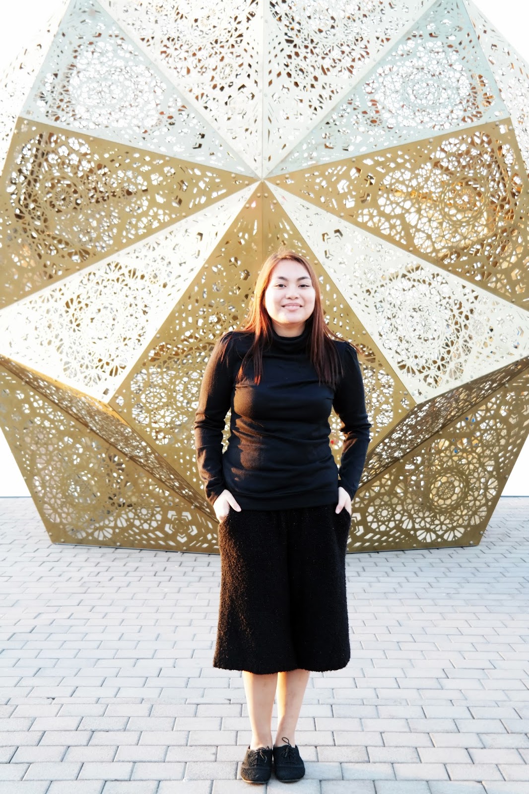 | What can I just say on wool culottes? Definitely comfy, stylish and warms me right up. I feel so cold in Dubai despite of it being a desert. So I was just strolling around here in Sharjah area, we saw Noor Island near the park, but sadly when we checked it the butterfly garden was closed already. Maybe I will just comeback, and if you follow me on instagram you already saw the plush I won. This is a typical minimal monochromatic look so I would look taller. I paired the culotte with a turtleneck. Black is just black. I have a favor to ask if you have a bit of time please check this out, the friend of my sister who is suffering from Leukemia, donations would be of big help. xo, Alyssa Photographer:Aimee Bustillo Capturing Life Memoirs |